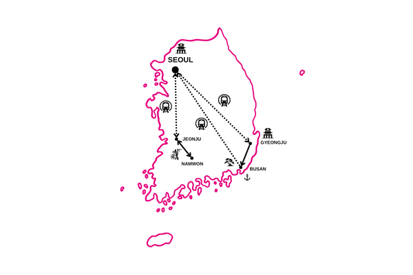 Partez à la découverte de la fascinante Corée du Sud à travers ses sites incontournables et ses régions majeures. Immergez-vous dans sa capitale Séoul, emplie de contrastes, entre temples bouddhistes et effervescence nocturne, émerveillez-vous face aux vestiges de Gyeongju, ville historique d'une richesse culturelle inouïe et arpentez les quartiers et marchés de la chaleureuse Busan, ville portuaire pleine de caractère. Poursuivez par une escapade raffinée au sud de Séoul, entre traditions vivantes et paysages sereins. De Jeonju à Namwon en passant par la forêt de bambous de Damyang, ce voyage révèle une autre facette de la Corée, plus douce, artisanale et poétique.