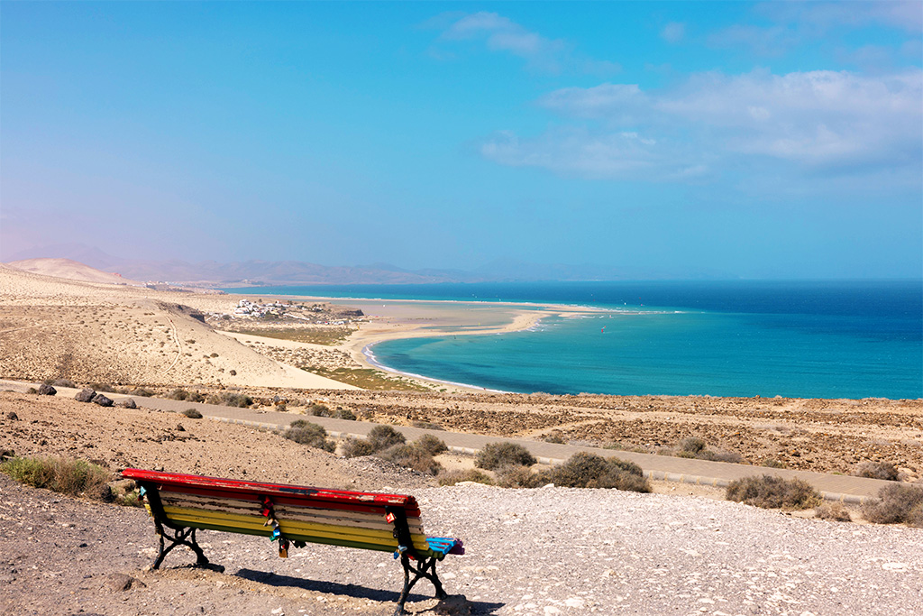Cap sur Fuerteventura, l’île aux milles couleurs élue Réserve de la Biosphère par l’Unesco en 2009 ! Situé à quelques encablures du Maroc, ce bijou des îles Canaries bénéficie d’un ensoleillement et d’un climat agréable tout au long de l'année. L’île rouge offre près de 150 km de plages aux eaux cristallines. Au cours de vos escapades, vous croiserez sûrement quelques petits villages pittoresques, aux multiples influences, empreints d'une mémoire qu’ils souhaitent préserver. Découvrez le parc naturel des dunes de Corralejo, espace protégé, depuis lequel vous pourrez profiter d’une vue imprenable sur les îles de Lanzarote et de Lobos, au nord de Fuerteventura. Explorez Betancuria, à l’intérieur des terres, la première ville de l’île et ancienne capitale chargée d’histoire et c’est au sud de l’île, que s’illustrent les paysages mythiques de volcans aux couleurs rouges ocre de l’île qui vous laisseront sans voix !