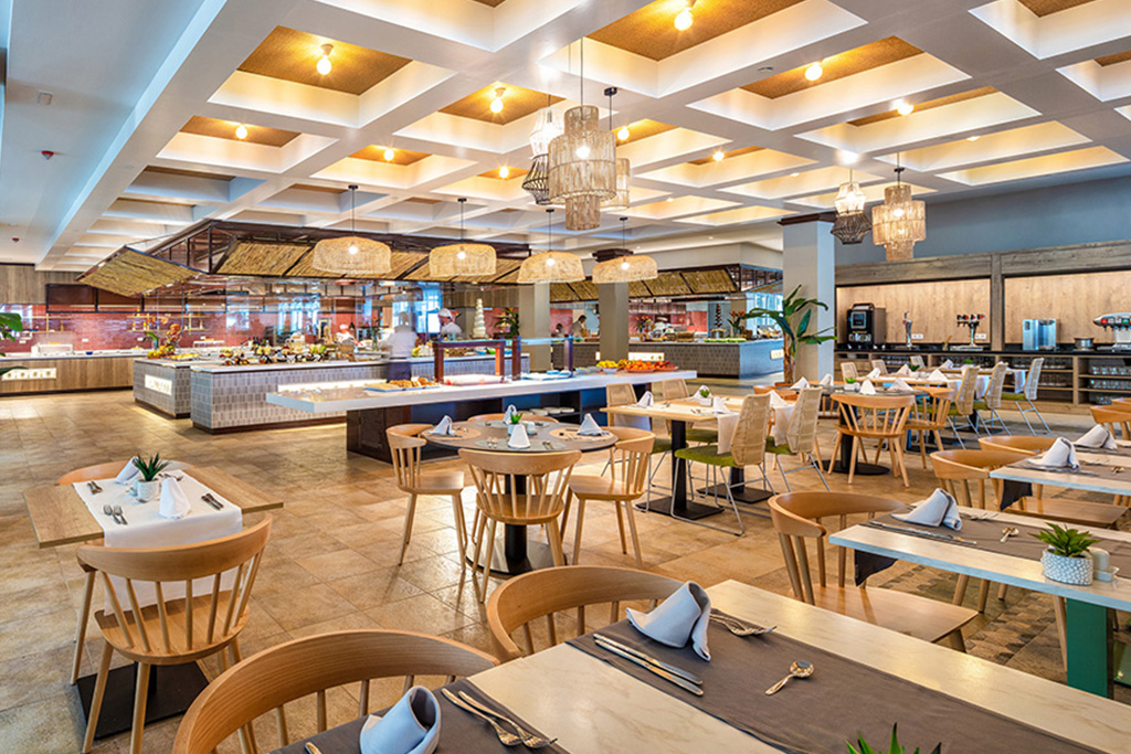 - Restaurant buffet « Food Market » avec petits déjeuners, déjeuners et dîners servis sous la forme de buffets variés.